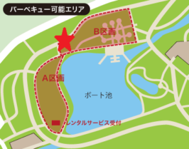 会場は庄内緑地の、ピクニック広場「A区画」となります。下記の地図の21番です。赤い星が付いているところの木陰に陣取る予定です。